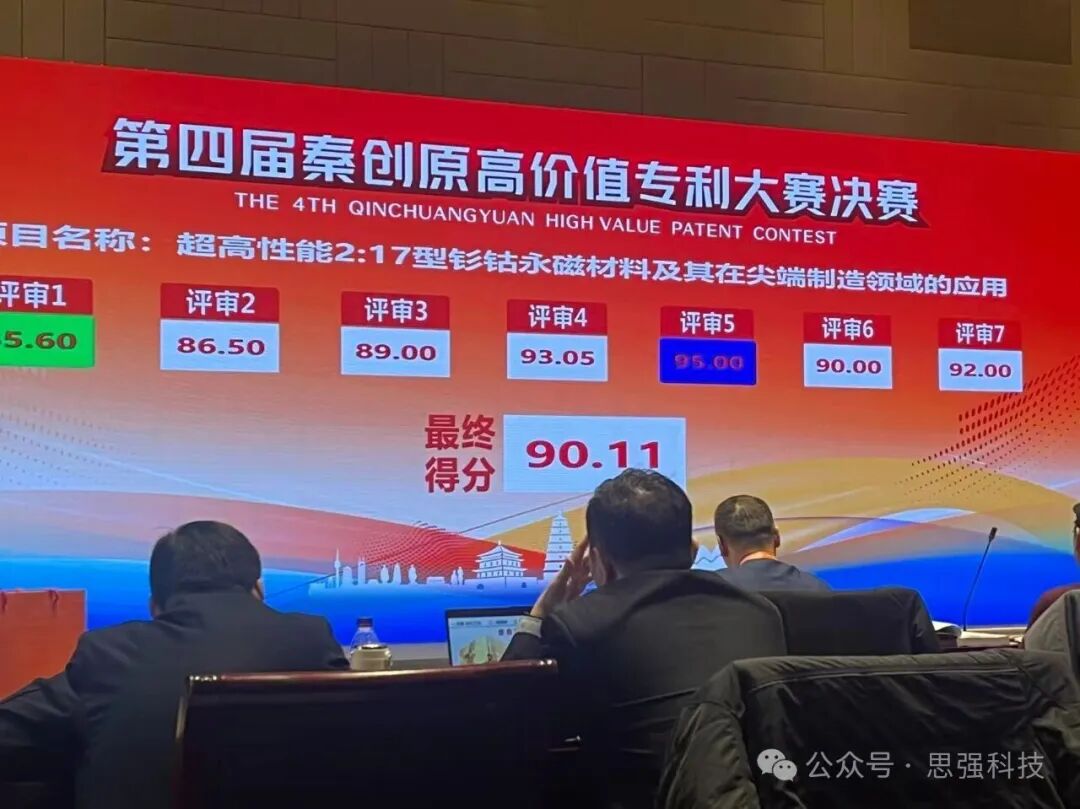 第四屆秦創(chuàng)原高價(jià)值專利大賽秉持“以賽助研、以賽提質(zhì)、以賽促轉(zhuǎn)”,經(jīng)項(xiàng)目征集、初賽(分賽)、復(fù)賽、決賽等環(huán)節(jié)評比,于2025年11月25日圓滿落幕。大賽由陜西省知識產(chǎn)權(quán)局、省教育廳、省科學(xué)技術(shù)廳、省工業(yè)和信息化廳、省人力資源和社會保障廳聯(lián)合主辦,吸引了全國346個(gè)新一代信息技術(shù)、人工智能、電子材料、生物制造、低空經(jīng)濟(jì)等戰(zhàn)略性新興產(chǎn)業(yè)領(lǐng)域項(xiàng)目踴躍報(bào)名,歷經(jīng)五個(gè)月多輪激烈角逐,西安思強(qiáng)科技股份有限公司技術(shù)團(tuán)隊(duì)的《超高性能2:17型釤鈷永磁材料及其在尖端制造領(lǐng)域的應(yīng)用》發(fā)明專利脫穎而出,榮獲大賽成長組“優(yōu)勝獎”。